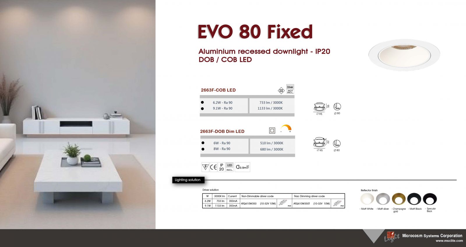 | DOB LED | 6W | 510 lm | 3000K | 90Ra |